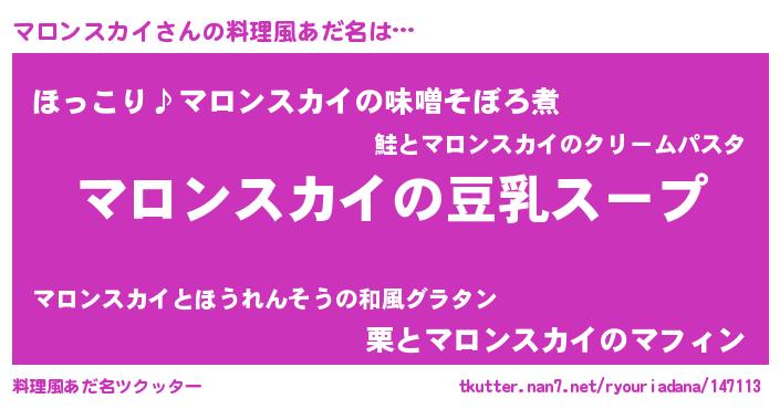 | 男性向けラノベタイトル風あだ名 | 『ダンジョンにマロンスカイを求めるのは間違っているだろうか』 |
