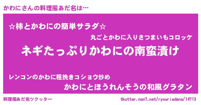 | 胡散臭い通販商品みたいなあだ名 | 『億万長者になれるブレスレット…その名も「かわに」』 |