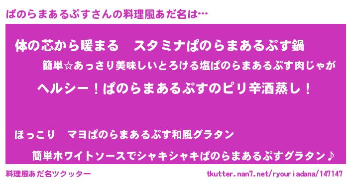 | 男性向けラノベタイトル風あだ名 | 『Re:ぱのらまあるぷすから始める異世界生活』 |