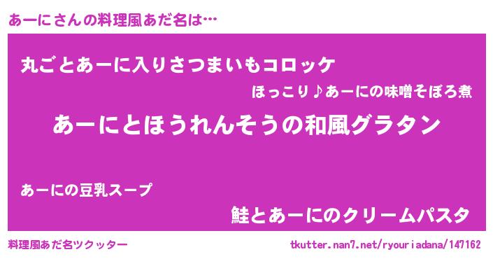 | ヘコむあだ名 | 『あーにゅー』『あー太郎』 |