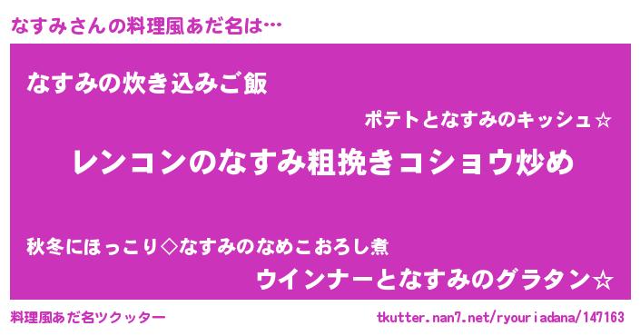 | 意味不明あだ名 | 『自称なすみ』『なすみフォーエバー』 |