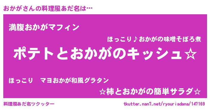 | 女子向けラノベタイトル風あだ名 | 『おかがの卵を拾いまして』 |