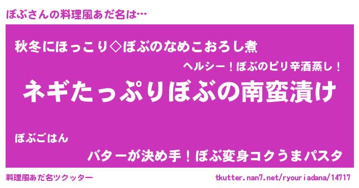 | ヘコむあだ名 | 『ぼぶもー』『なまこ酢』『ぼぶお』 |