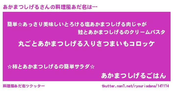 | ヘコむあだ名 | 『あかまつしげる(笑)』『あかもー』 |
