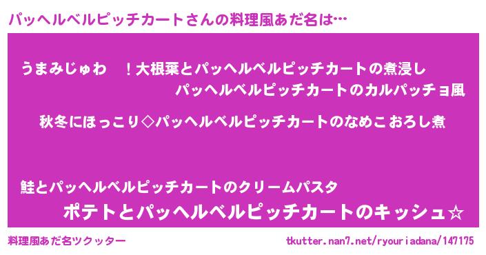 | 男性向けラノベタイトル風あだ名 | 『パッヘルベルピッチカートに滅ぼされるだけの簡単なお仕事です』 |