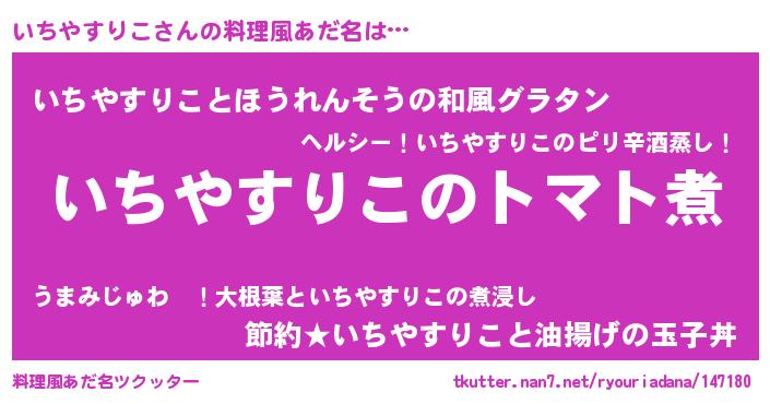 | 女子向けラノベタイトル風あだ名 | 『いちやすりこ夫妻のなれそめ』 |