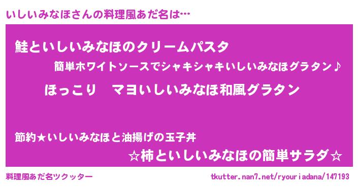 | 男性向けラノベタイトル風あだ名 | 『この素晴らしい世界にいしいみなほを!』 |