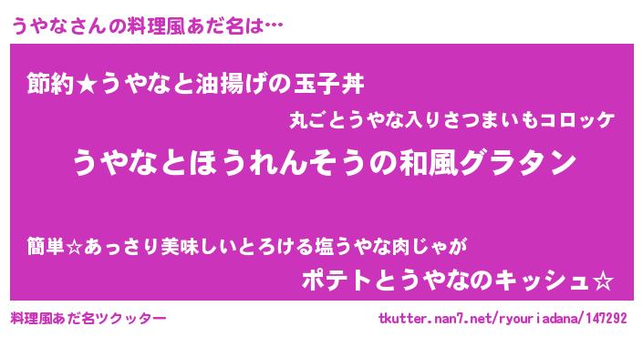 | 女子向けラノベタイトル風あだ名 | 『うやなの玉の輿計画!』 |