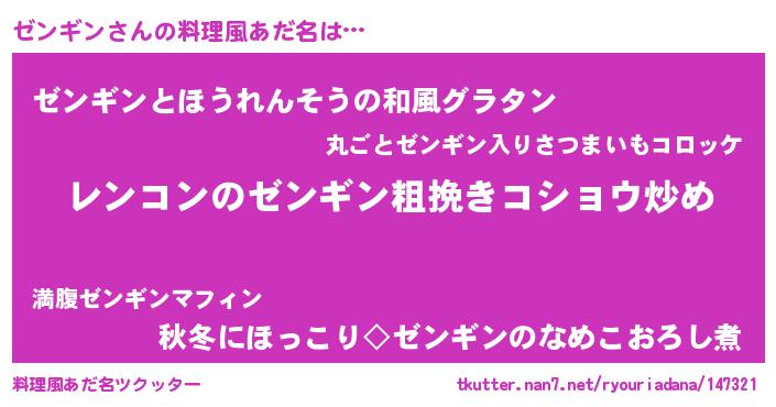 | ヘコむあだ名 | 『ゼンギン(苦笑)』『ゼンにー』 |