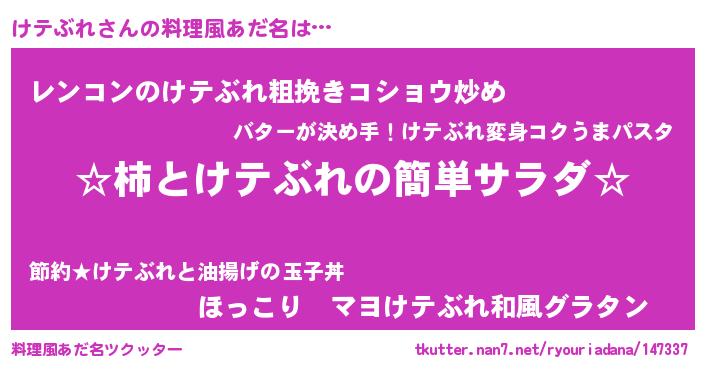 | 意味不明あだ名 | 『自称けテぶれ』『ペロリンけテぶれ』 |