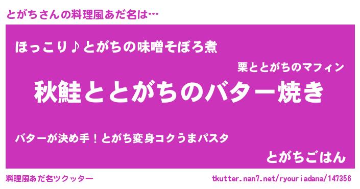 | 女子向けラノベタイトル風あだ名 | 『とがちの契約王妃』『とがち恋絵巻』 |