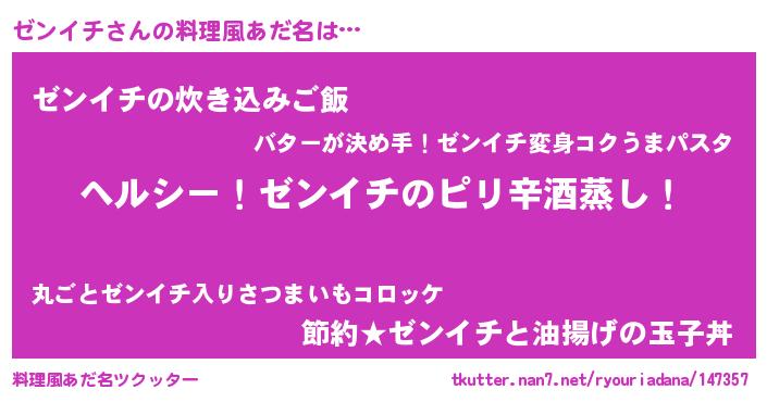 | ヒーロー風カッコイイあだ名 | 『最強戦士ゼンイチ』『スーパーゼンイチ』 |