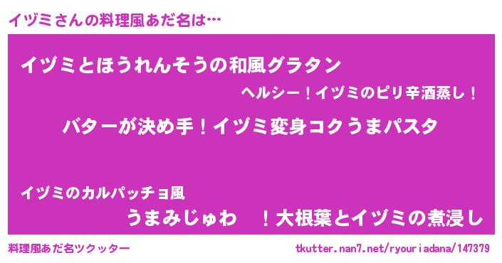 | ヒーロー風カッコイイあだ名 | 『慈愛の使者イヅミ』『究極戦士イヅミ』 |