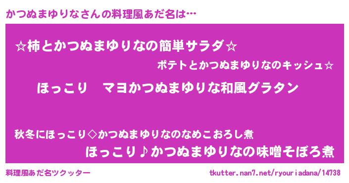 | 男性向けラノベタイトル風あだ名 | 『この素晴らしい世界にかつぬまゆりなを!』 |