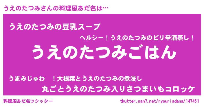 | 肩書あだ名 | 『うえのたつみ上級大将』 |