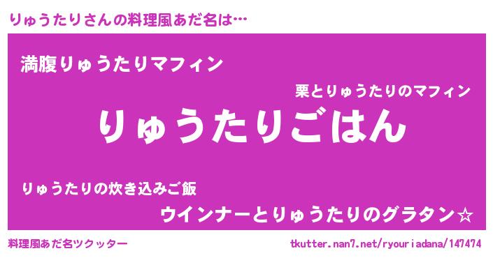 | 胡散臭い通販商品みたいなあだ名 | 『絶対に幸福をもたらす健康食品…その名も「りゅうたり」』 |