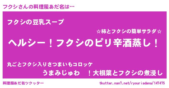 | ピコ太郎風あだ名 | 『フク六郎』『ピフ史郎』『フフ太郎』 |