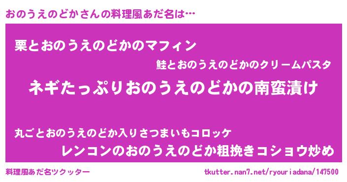| 胡散臭い通販商品みたいなあだ名 | 『億万長者になれるブレスレット…その名も「おのうえのどか」』 |