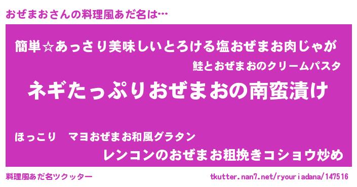 | 意味不明あだ名 | 『ペロリンおぜまお』『永久保存おぜまお』 |