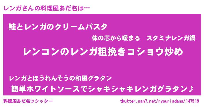 | ヘコむあだ名 | 『レンっ子』『レバニラ』『レンにー』 |