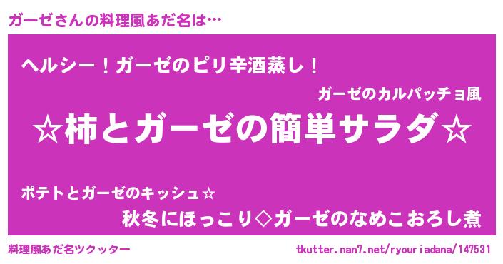 | 男性向けラノベタイトル風あだ名 | 『緋弾のガーゼ』『魔弾の王とガーゼ』 |