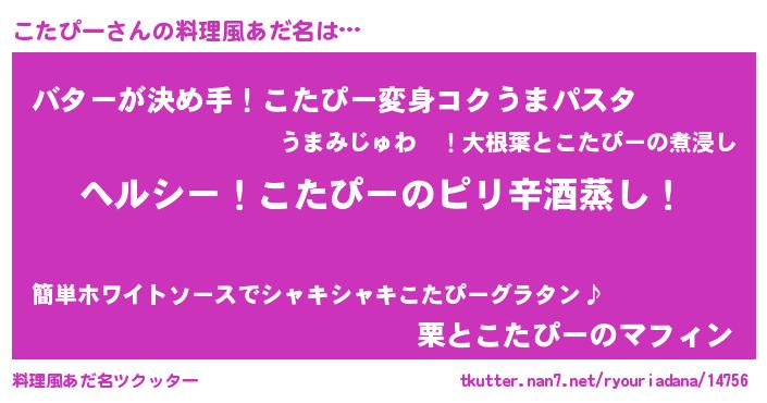 | 女子向けラノベタイトル風あだ名 | 『闇のこたぴー』『こたぴー恋絵巻』 |