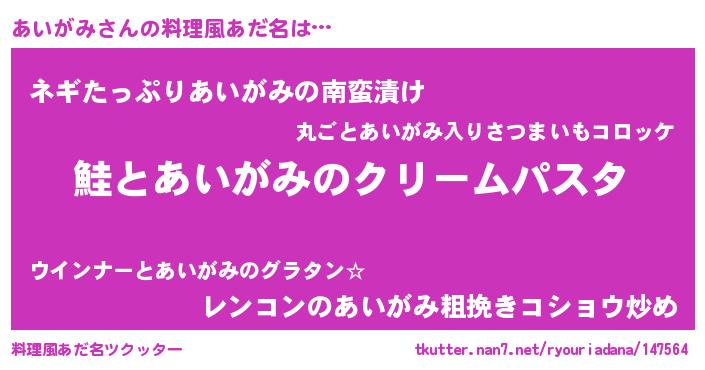 | ヘコむあだ名 | 『あいにー』『牛乳』『あいがみ(笑)』 |