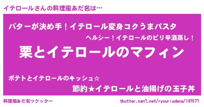 | ヒーロー風カッコイイあだ名 | 『正義の使者イテロール』『黄金騎士イテ』 |