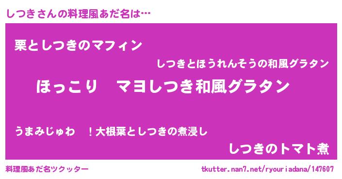 | 男性向けラノベタイトル風あだ名 | 『この素晴らしい世界にしつきを!』 |