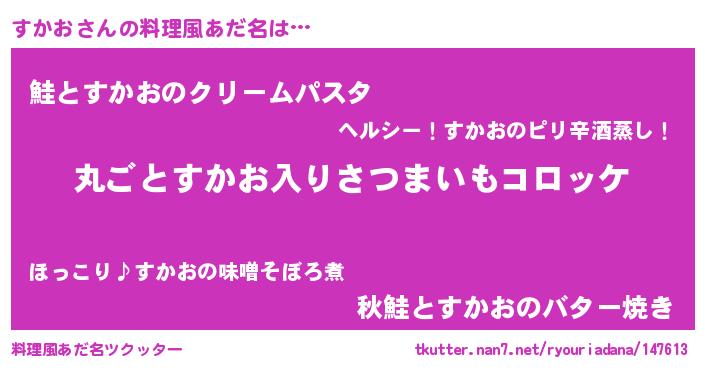 | ヘコむあだ名 | 『すかお(震え声)』『すかにー』 |