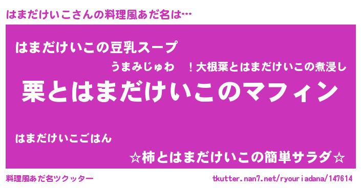 | ポケモン風あだ名 | 『ハマゴンZ』『ヒハマダケイコ』 |