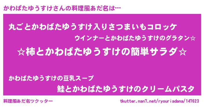 | 欧米人風あだ名 | 『かわばたゆうすけ・ステッグマイヤー』 |