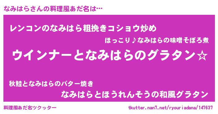 | ポケモン風あだ名 | 『ナミハダネ』『ナミセウス』 |