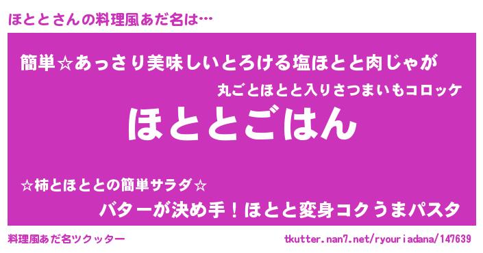 | ヘコむあだ名 | 『ほとと(爆)』『レバニラ』『ほとを』 |