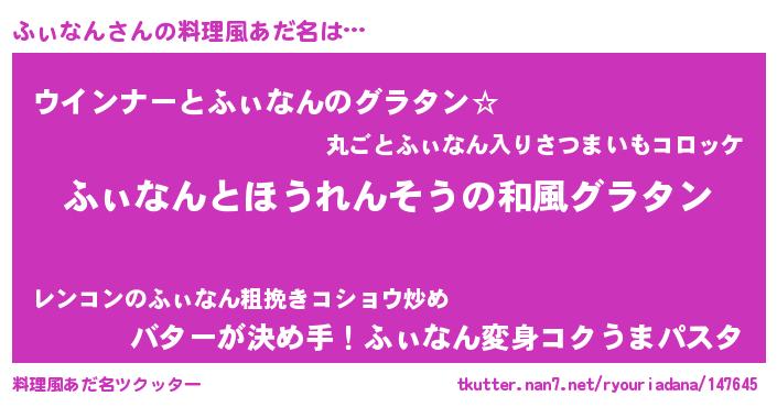 | ポケモン風あだ名 | 『フィキング』『フィナダネ』 |