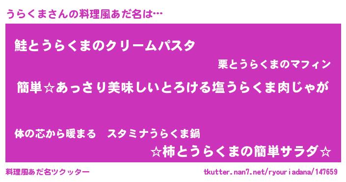 | ヘコむあだ名 | 『うらくま(笑)』『豆乳』『うらお』 |
