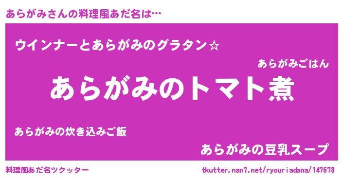 | 男性向けラノベタイトル風あだ名 | 『おまえをオタクにしてやるから、俺をあらがみにしてくれ! 』 |