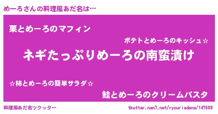 | ヘコむあだ名 | 『めーっふぃ~』『めーお』『豆乳』 |