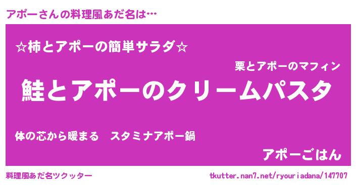 | ヘコむあだ名 | 『酢こんぶ』『アポっぺ』『アポもー』 |