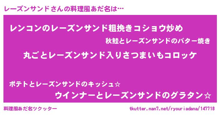 | 意味不明あだ名 | 『住所不定無職レーズンサンド(8歳)』 |