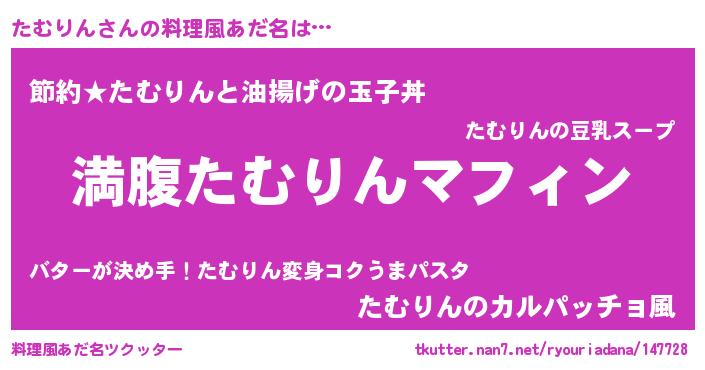 | 女子向けラノベタイトル風あだ名 | 『異世界で失敗しない100のたむりん』 |