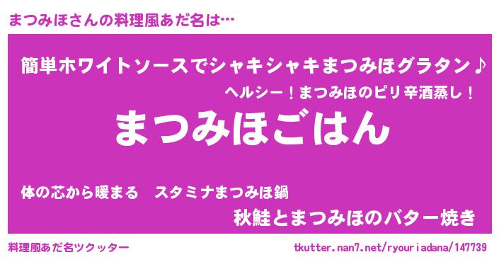 | ポケモン風あだ名 | 『マツキング』『ヒマツミホ』 |