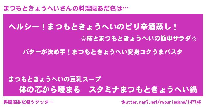 | 女子向けラノベタイトル風あだ名 | 『まつもときょうへい恋絵巻』 |