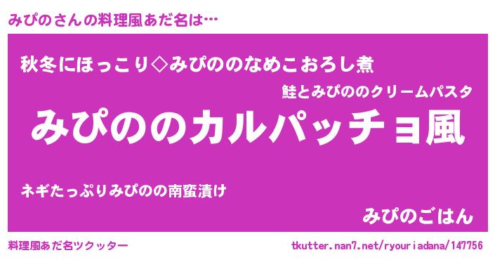 | ヘコむあだ名 | 『みぴっふぃ~』『みぴの(爆)』 |