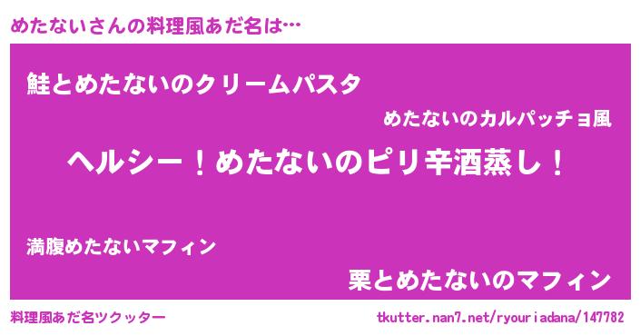 | 女子向けラノベタイトル風あだ名 | 『闇のめたない』『死神めたないの再婚』 |