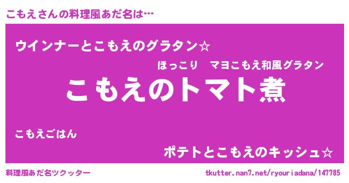 | ヒーロー風カッコイイあだ名 | 『正義の使者こもえ』『天弓騎士コモ』 |