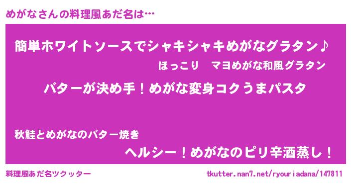 | 意味不明あだ名 | 『眠気覚ましガムめがな味』『自称めがな』 |
