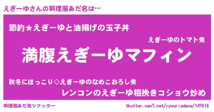 | 意味不明あだ名 | 『永久保存えぎーゆ』『ペロリンえぎーゆ』 |