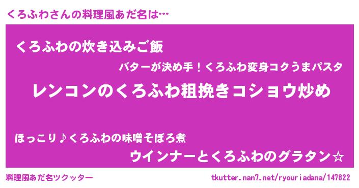 | 意味不明あだ名 | 『自称くろふわ』『くろふわフォーエバー』 |