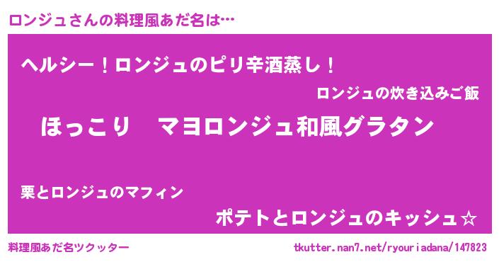 | 男性向けラノベタイトル風あだ名 | 『この素晴らしい世界にロンジュを!』 |